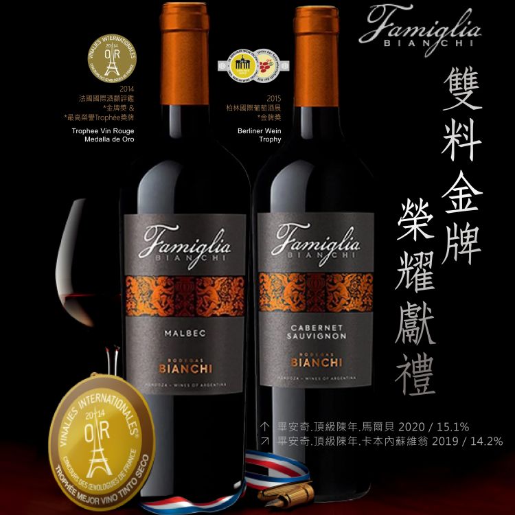 2014年第20屆法國國際葡萄酒烈酒品評賽「金牌獎與最高榮譽Trophée獎牌」- 由在阿根廷門多薩擁有90年歷史的畢安奇家族酒莊所釀出的2012畢安奇頂級馬爾貝,畢安奇頂級馬爾貝當時與來自於41個國家,3500多種不同的葡萄酒相對比較,在長達3天的比賽中經過150位評審嚴格品比後最終榮獲最高榮譽金牌與Trophée獎牌。畢安奇家族酒莊的頂級陳年Famiglia系列在1994年首度亮相,是一款代表畢安奇家族與發起人義大利根基和傳統的葡萄酒。法定等級產區為D.O.C. San Rafael-Mendoza。這款馬爾貝屬陳年(Reserve)級紅酒,來自於兩個葡萄園的馬爾貝葡萄:位於海拔750米的Doña Elsa莊園與Finca Constanza Stradella Bianchi,兩者都在門多薩的San Rafael省。裝瓶前在法國橡木桶內陳藏8個月,出廠前瓶中繼續陳年4個月。酒質飽和濃郁,深紫紅的色澤,強烈的果實香氣中透露出熟成的梅子與櫻桃、口感中帶有法國橡木桶的辛香跟美國像木桶的巧克力味道。本酒香軟不澀,滑潤如絲,呈現高檔極品的貴氣。